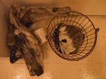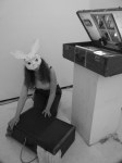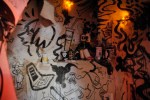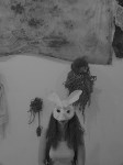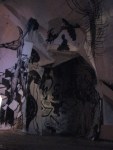 A group show, THE CAVE was presented at Frontrunner Gallery March 16th-31st, 2012. Produced by Corinne Beardsley, 20 artists and performers built a cave out of cardboard and wheat pasting newsprint to paint, draw, install sculpture, soundscapes, and host performances of music and theater. The show will inhabited two spaces at 59 Franklin St.- the 400 sq. foot gallery, and it’s project space in the deep caverns of the building. The audience discovered the dark spaces using crafted flashlight torches.