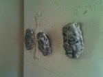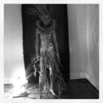 A group show, THE CAVE was presented at Frontrunner Gallery March 16th-31st, 2012. Produced by Corinne Beardsley, 20 artists and performers built a cave out of cardboard and wheat pasting newsprint to paint, draw, install sculpture, soundscapes, and host performances of music and theater. The show will inhabited two spaces at 59 Franklin St.- the 400 sq. foot gallery, and it’s project space in the deep caverns of the building. The audience discovered the dark spaces using crafted flashlight torches.